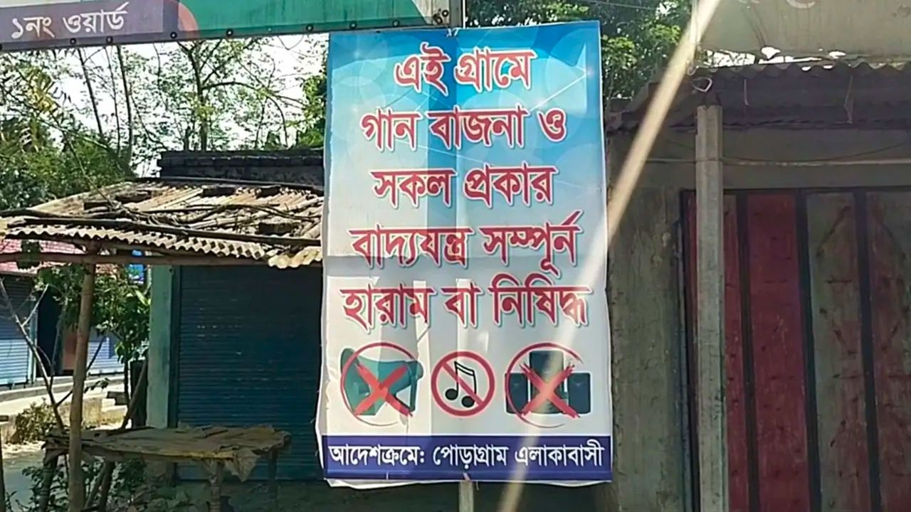 এ কারণে গ্রামে প্রকাশ্যে উচ্চশব্দে গান বাজনা বা বাদ্যযন্ত্র বাজানো সম্পূর্ণ নিষিদ্ধ ঘোষণা করা হয়। নির্দেশনা অমান্য করলে আইনগত ব্যবস্থা নেওয়ার কথা উল্লেখ করা হয়।