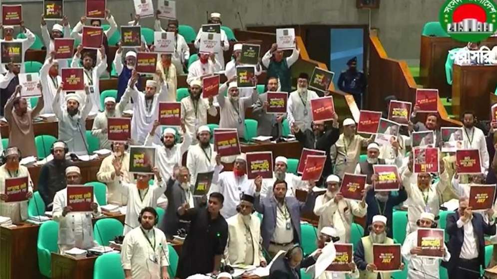 পরে রাষ্ট্রপতি অধিবেশন কক্ষে প্রবেশ করার পরও তারা বসে থেকে প্ল্যাকার্ড উঁচিয়ে প্রতিবাদ জানান। রাষ্ট্রপতি মো. সাহাবুদ্দিন ভাষণ দেওয়া শুরু করার পরও বিরোধীরা দাঁড়িয়ে উচ্চস্বরে প্রতিবাদ জানাতে থাকেন। এরপর, রাষ্ট্রপতি ভাষণ শুরু করার সঙ্গে সঙ্গে বিরোধীরা ওয়াক আউট করেন।